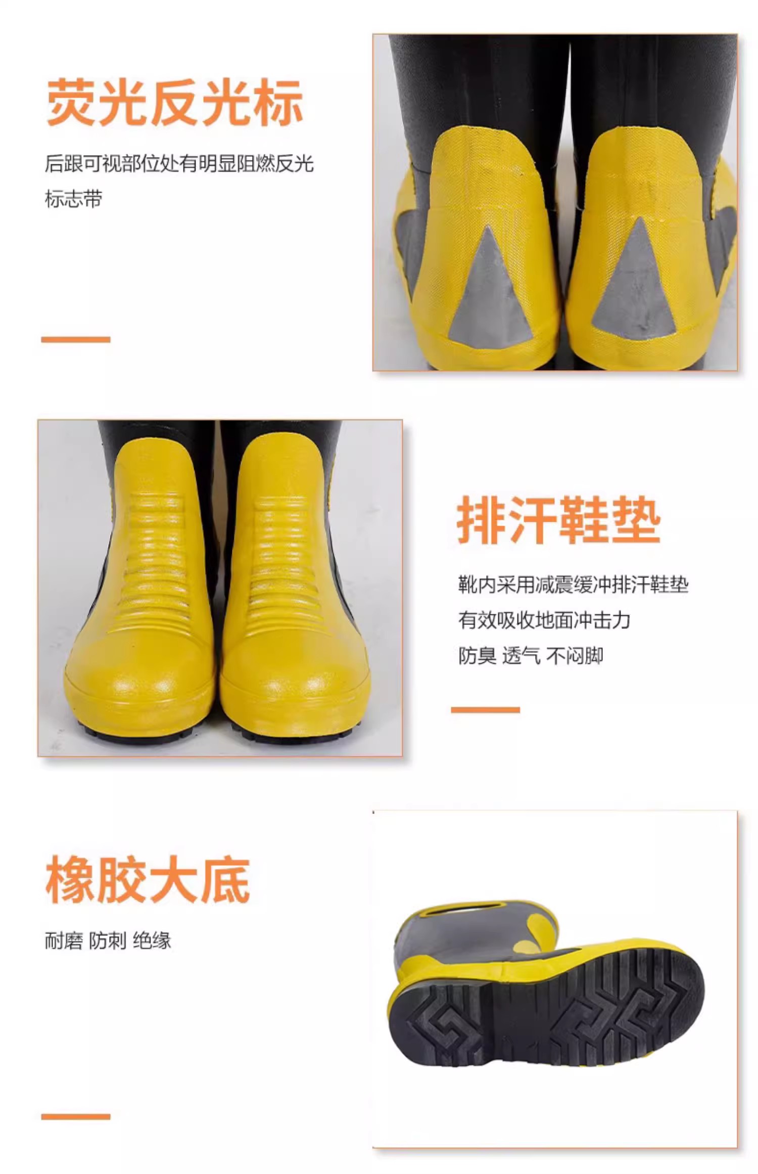 鴻寶滅火防護靴戰(zhàn)斗膠靴防砸防刺輕便防滑廠家直供